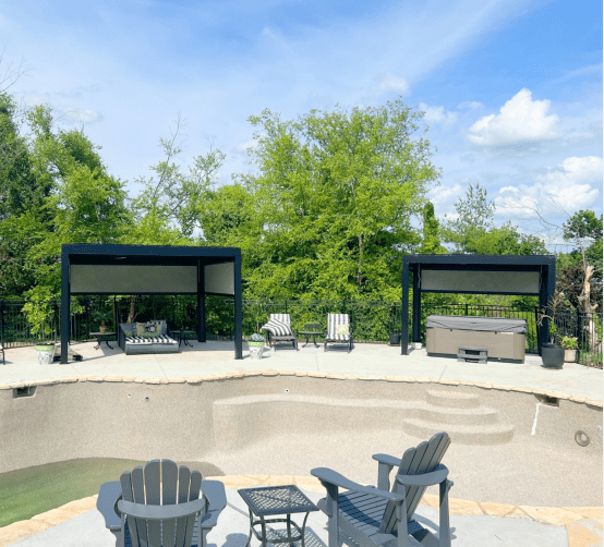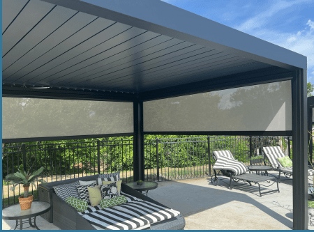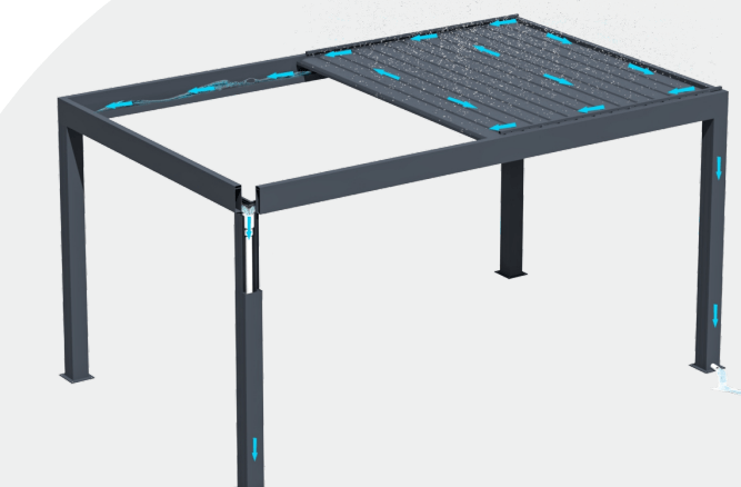 Each pergola comes with built-in rubber seals inside the louver blades that shield against rain water and eliminate any chatter from wind.