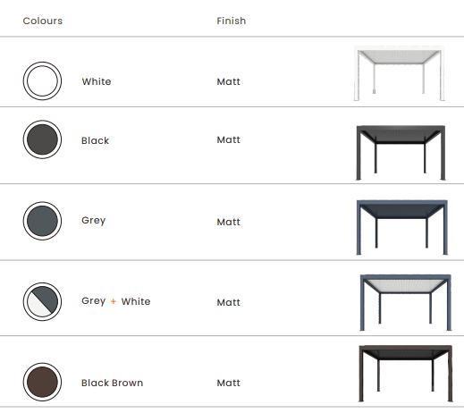 Powder coated with AkzoNobel Brand allows our pergola to resist the harsh environments.